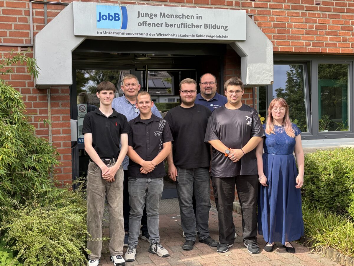 Ihre Ausbildung bei der JobB haben sie erfolgreich abgeschlossen: Jenny Maier und Fabian Morris Skalischus beendeten ihre Ausbildung als Fachpraktikerin bzw. als Fachpraktiker in der Küche, Anthony Alexander Brian Link als Fachpraktiker im Verkauf sowie Randy-Steven Peschel und Nils Jaudzim als Fachpraktiker im Maler- und Lackiererhandwerk. Im feierlichen Rahmen nahmen sie ihre Gesellenbriefe entgegen. Die JobB GmbH gratuliert und wünscht …